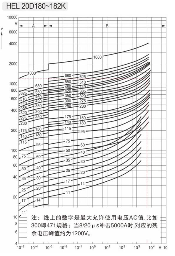 橫軸是沖擊時間即浪涌波型寬度,縱軸是沖擊電流峰值,